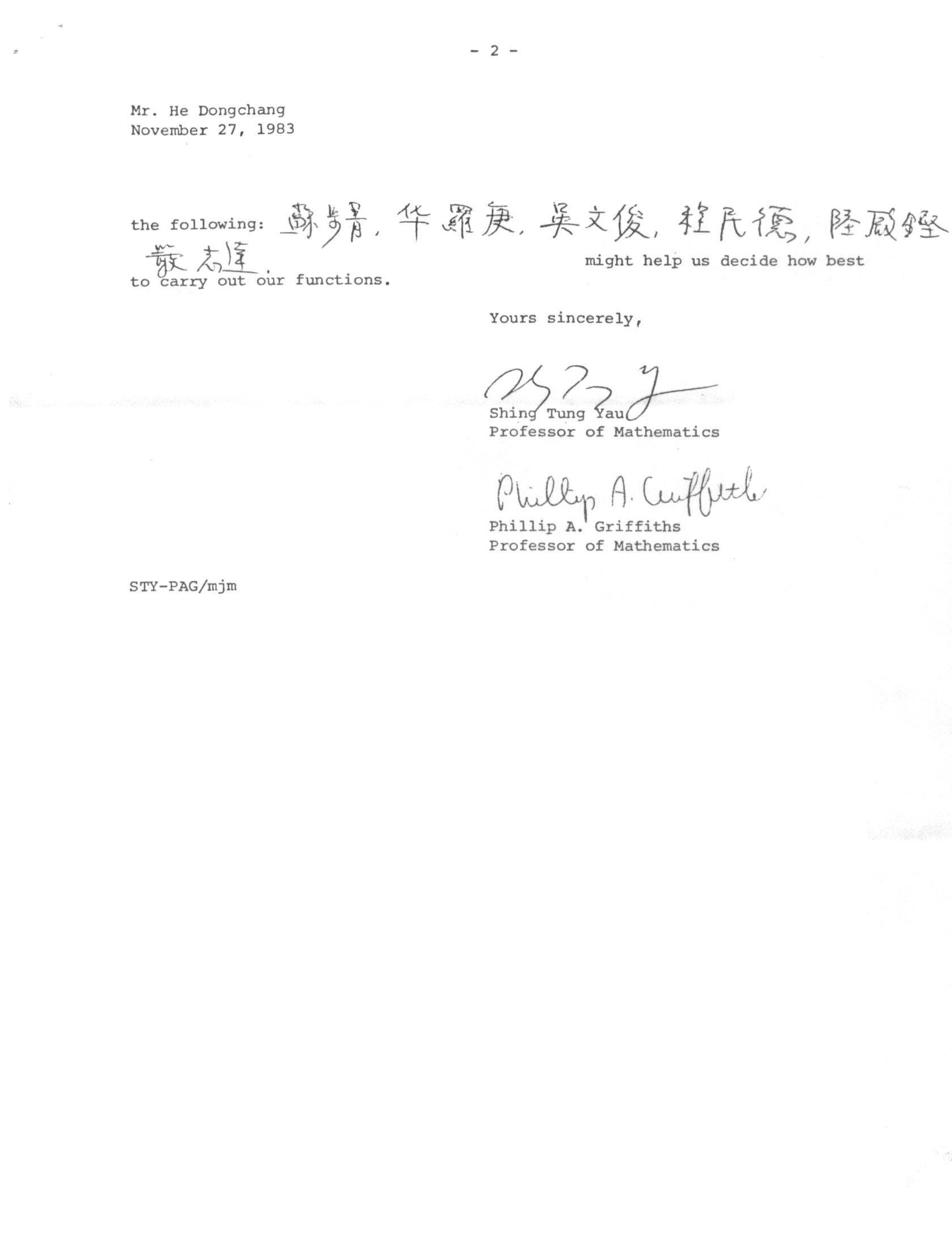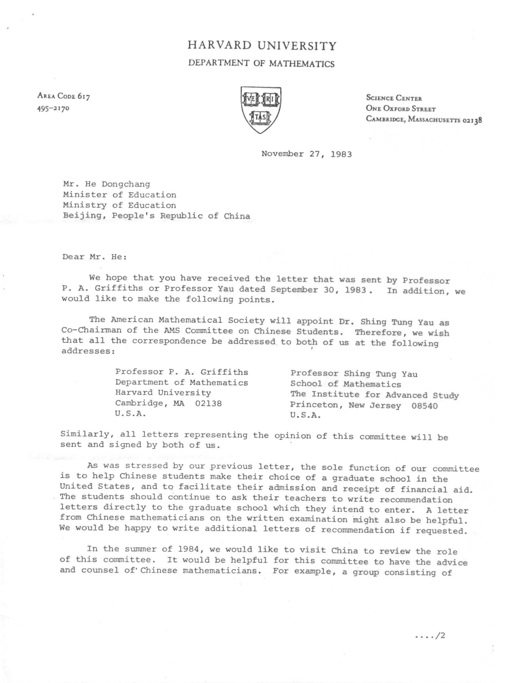 Griffiths 與丘先生聯名致教育部長何東昌先生信件覆印本