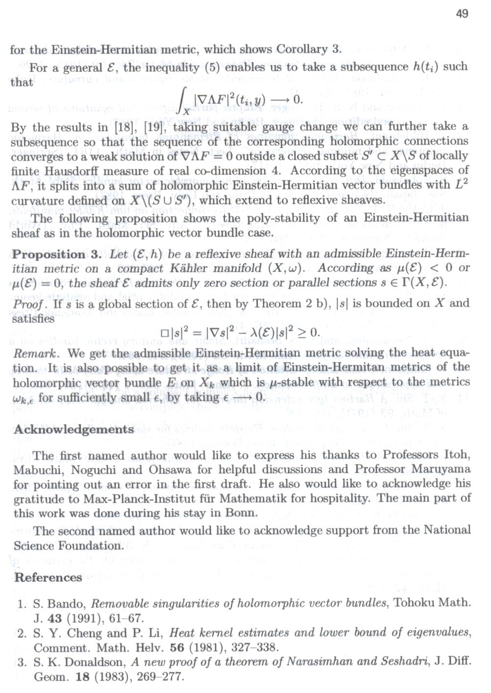 The Paper of Shigetoshi Bando and Yum-Tong Siu on "Stable Sheaves and Einstein-Hermitian Metrics" In: Geometry and Analysis on Complex Manifolds, ed. Mabuchi et al, World Scientific 1994, pp.39-50